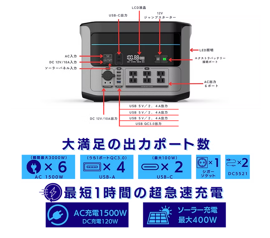 「Sycleポータブル電源1408本体」、「Sycleポータブル電源1408本体+エクストラバッテリーセット」は、在庫がある場合、最短で3日以内の配送が可能ですが、在庫切れの場合はお時間がかかる場合がございます。