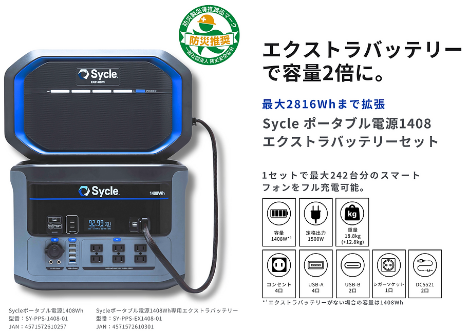 Sycle ポータブル電源1408+エクストラバッテリーセット